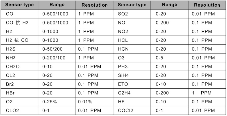 1)Detecting gas: CO,H2,H2S,NH3.CH2O ect. Gas customizable.