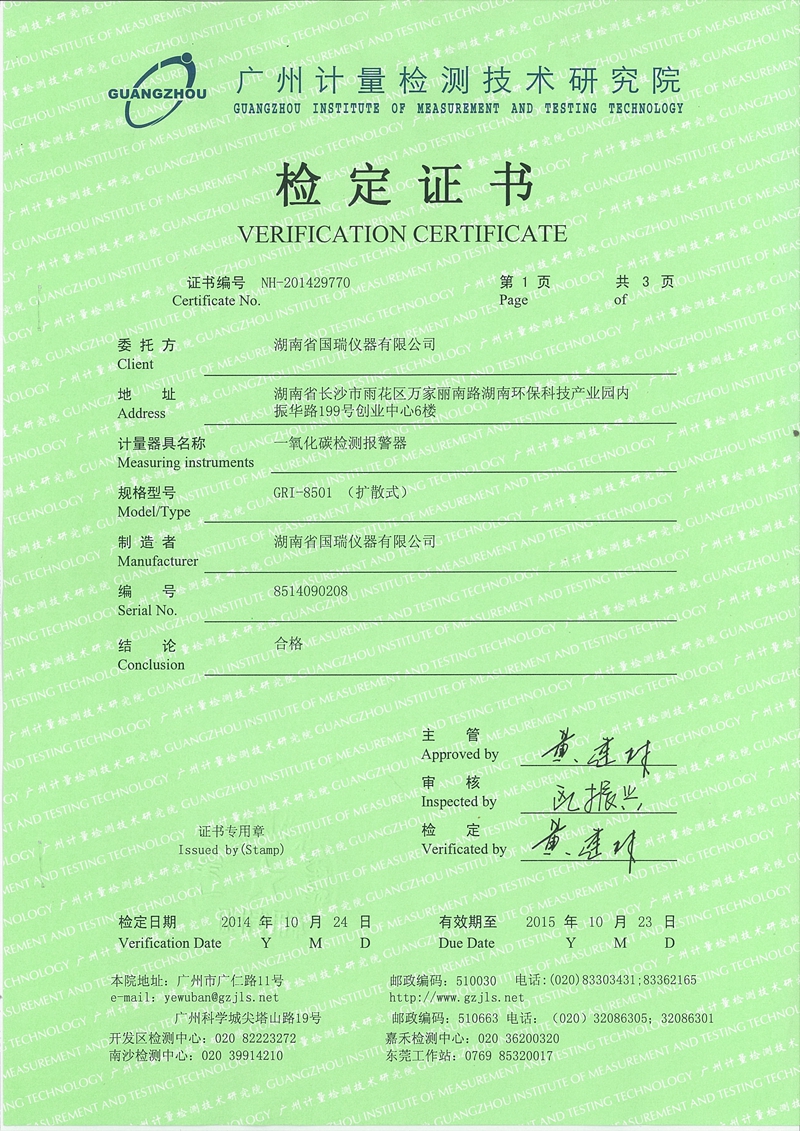 一氧化碳報警器鑒定證書