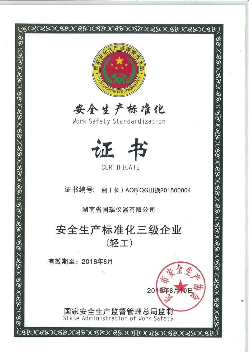 安全生產(chǎn)標(biāo)準(zhǔn)化證書