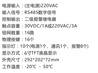 具有兩路RS485信號,一路連接工控PC機(jī),一路連接485變送器和報(bào)警繼電器。